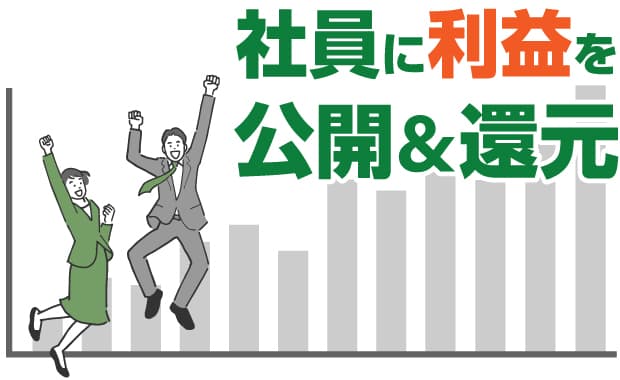 でも、当社の場合、利益を社員に還元し、みんなで会社を成長させていこうという考えなので、通常では見せない数字も全て隠すことなくオープンにしています。