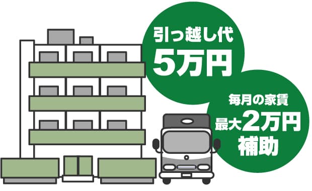 まず、返済不要の一時金として5万円支給するので、それで引っ越しができます。
